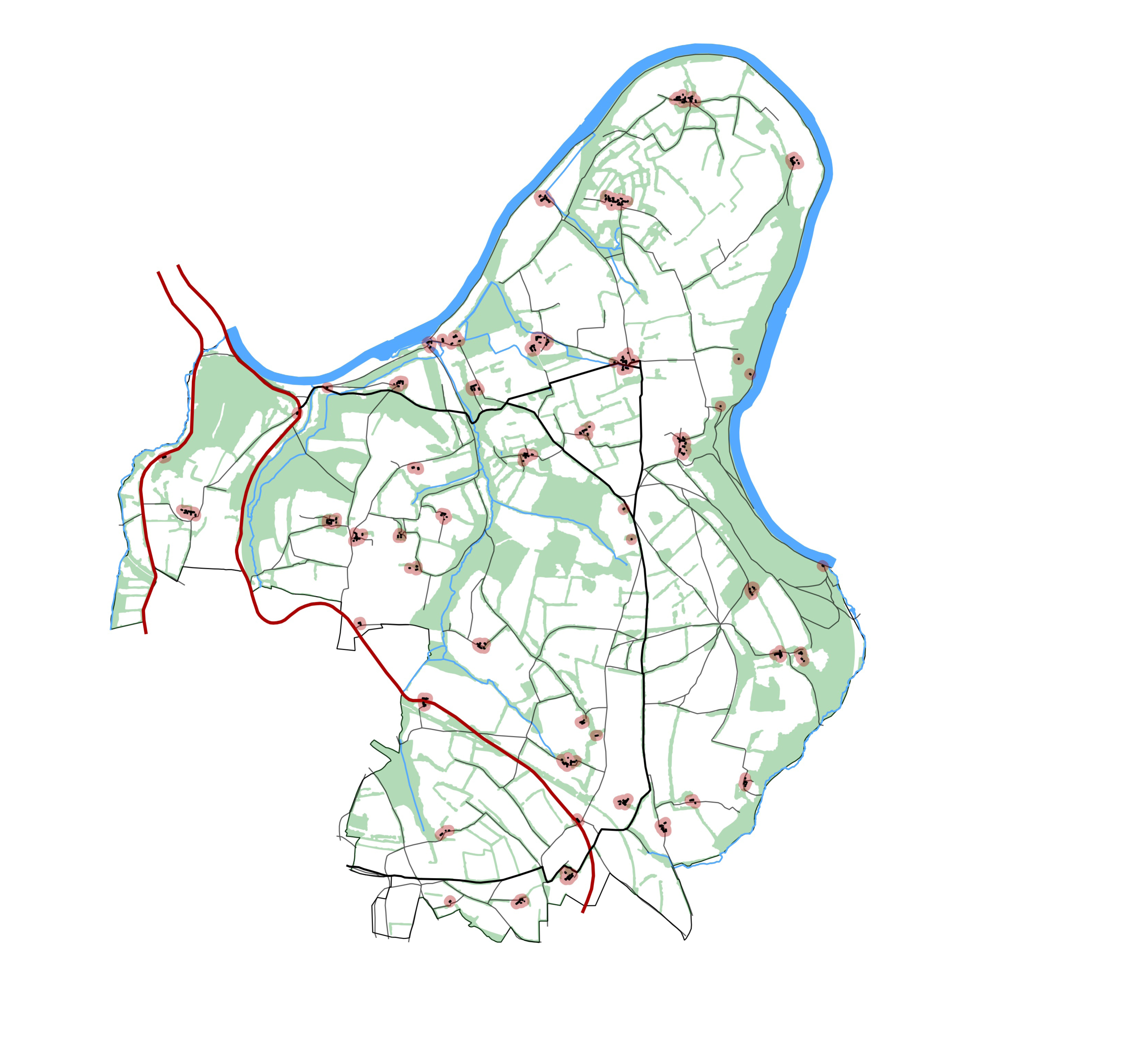 Carte de l'implantation du bâti à Saint-Coulitz en 1847Immatriculation
