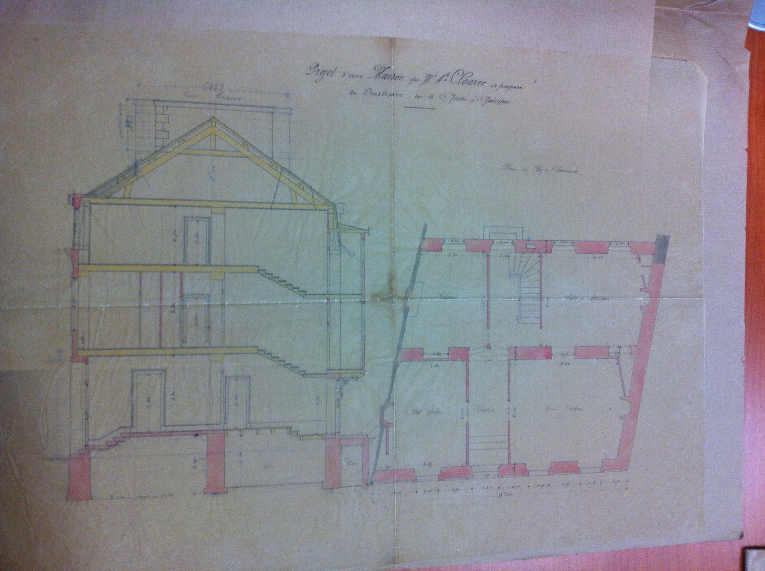 Plan de la maison de Monsieur Cloarec - coupe et plan du rez-de-chausséeImmatriculation