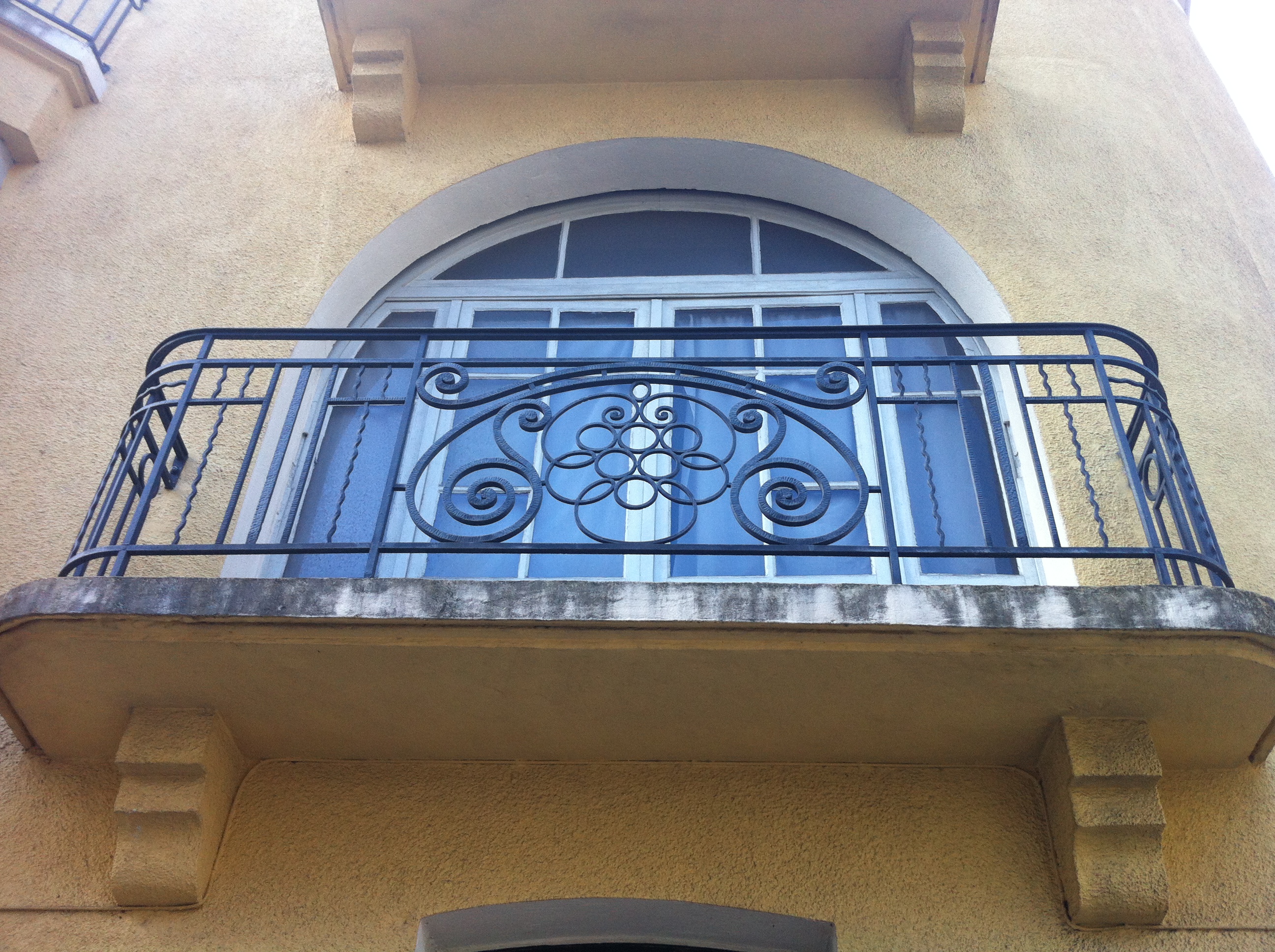 Balcon avec ferronneries ouvragées avec motifs variésImmatriculation