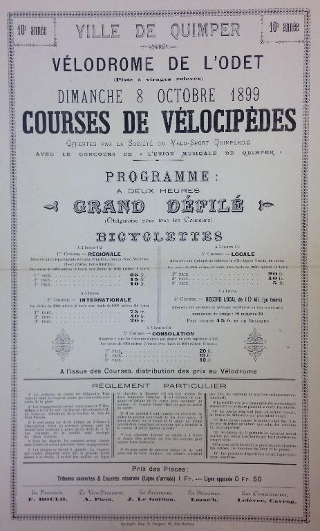 Programme des courses de vélocipèdes organisées par le Vélo-Sport Quimpérois au vélodrome de l'Odet pour le dimanche 8 octobre 1899Immatriculation
