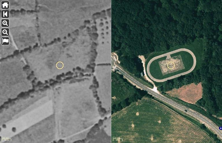 Vue aérienne comparée du site 1952 vs. 2012Immatriculation