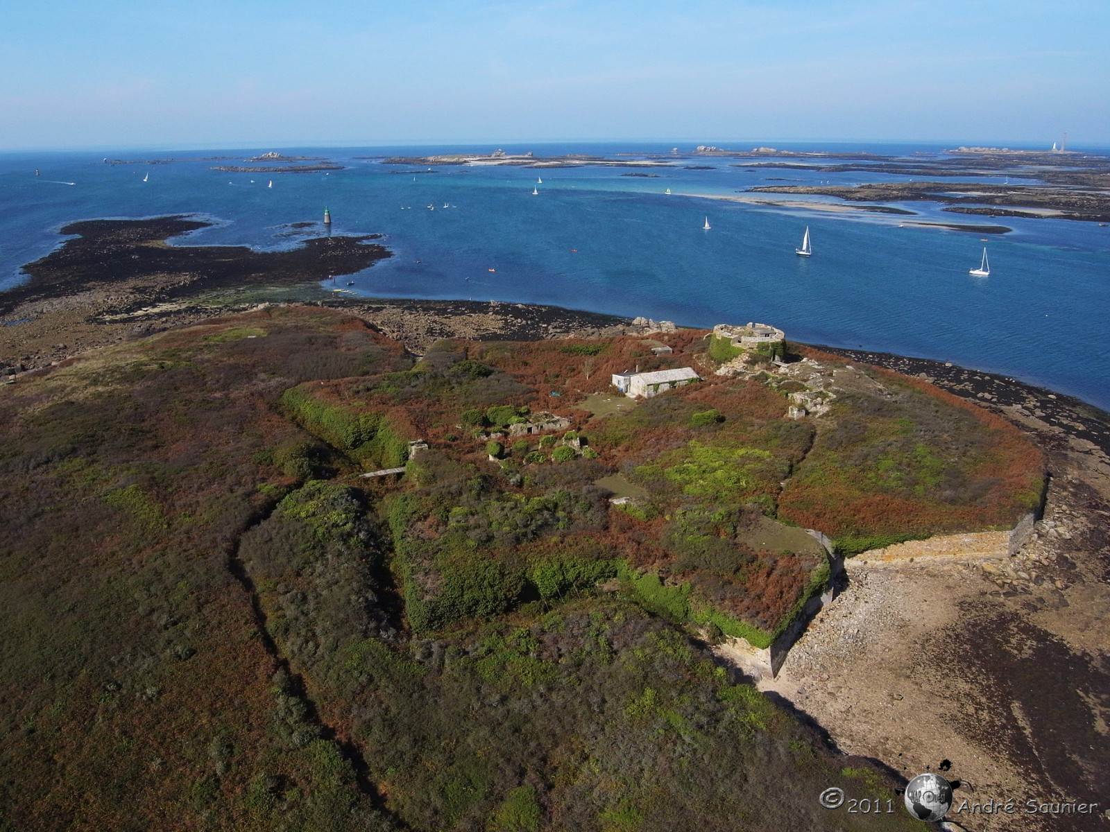Landéda : vue aérienne oblique de l'île Cézon et de son fort (photographie : André Saunier, 2011 / Kite Aerial Photography : photographie aérienne par cerf-volant)Immatriculation