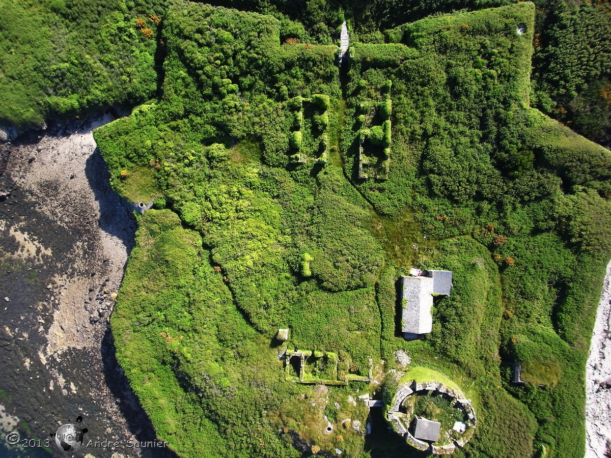 Landéda : vue aérienne verticale de l'île Cézon et de son fort (photographie : André Saunier, 2013 / Kite Aerial Photography : photographie aérienne par cerf-volant)Immatriculation