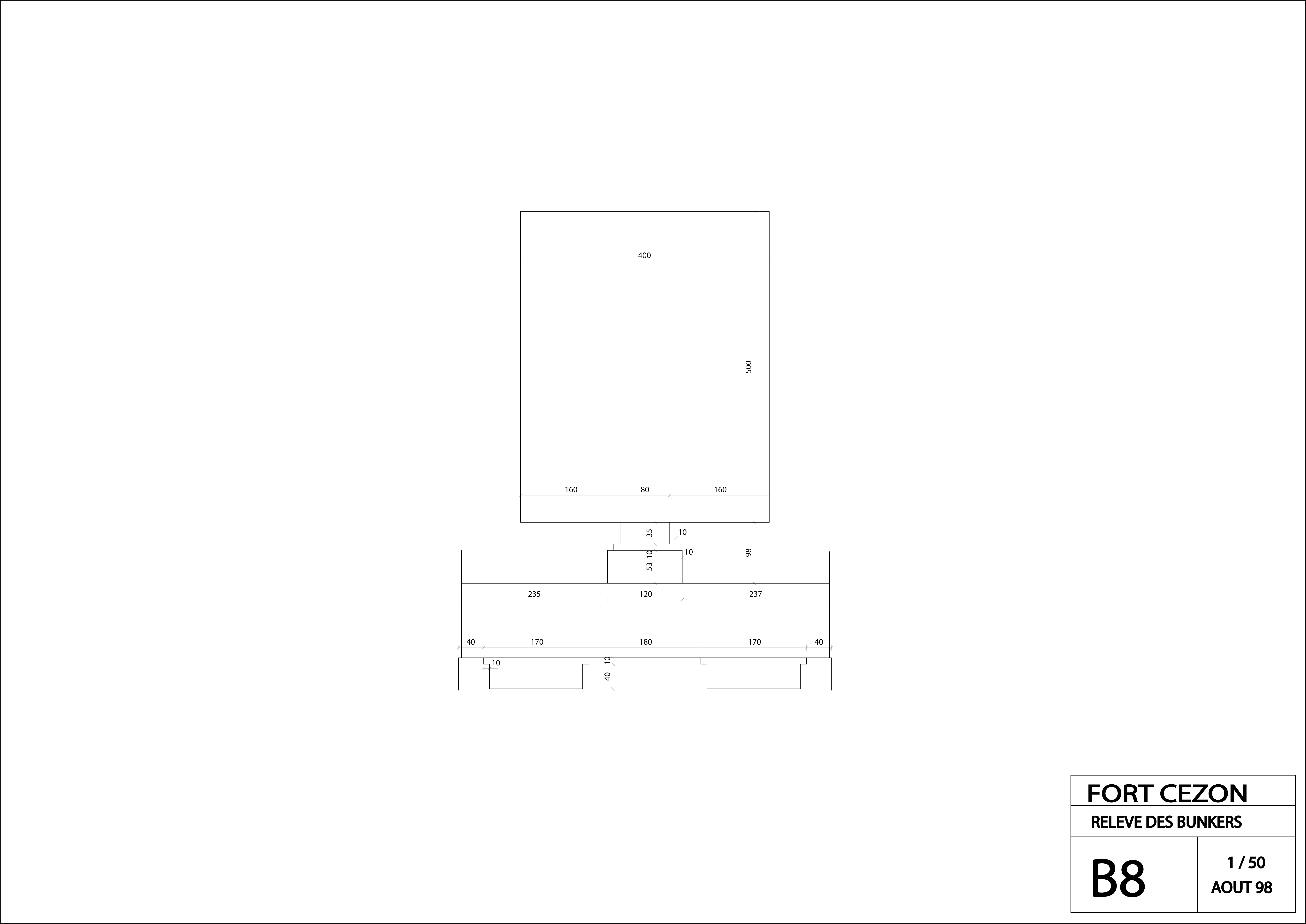 Landéda, île Cézon : plan de l'abri à personnel de type VF du fort Cézon (relevé : Association Cézon, août 1998)Immatriculation