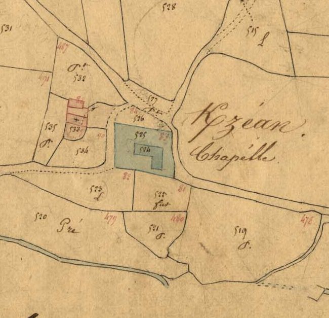 La ferme de Kerzéan sur le cadastre de 1837 (A. D. du Finistère, 3 P 185/4)Immatriculation
