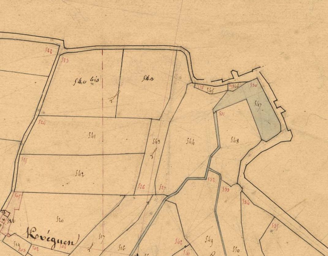 La partie aval du moulin Riou sur le cadastre de 1837 (A. D. du Finistère, 3 P 187/9)Immatriculation