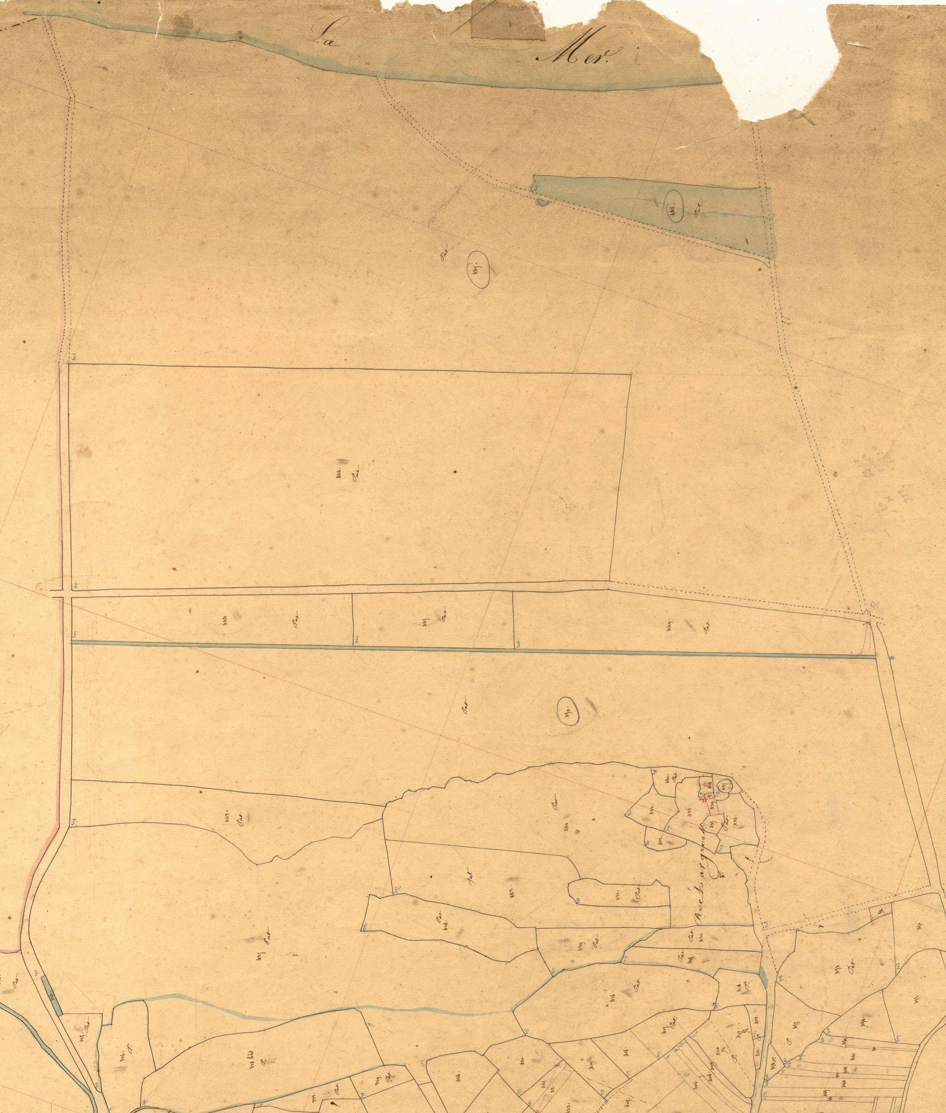 Plounévez-Lochrist. Cadastre napoléonien, section A1 de la Mer. Levée par M. Touzé, géomètre, 1837, échelle 1/2500 e.
