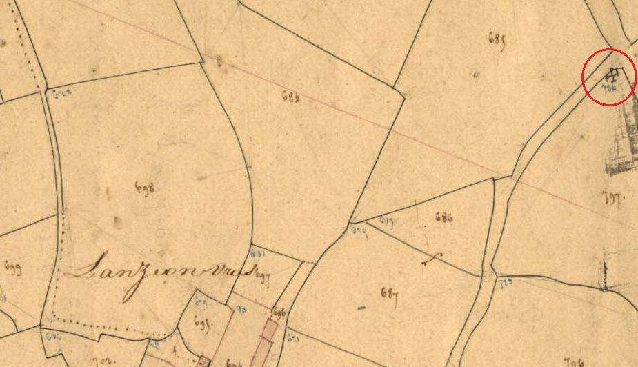 La croix sur le cadastre de 1837 (A. D. du Finistère, 3 P 207/3)Immatriculation