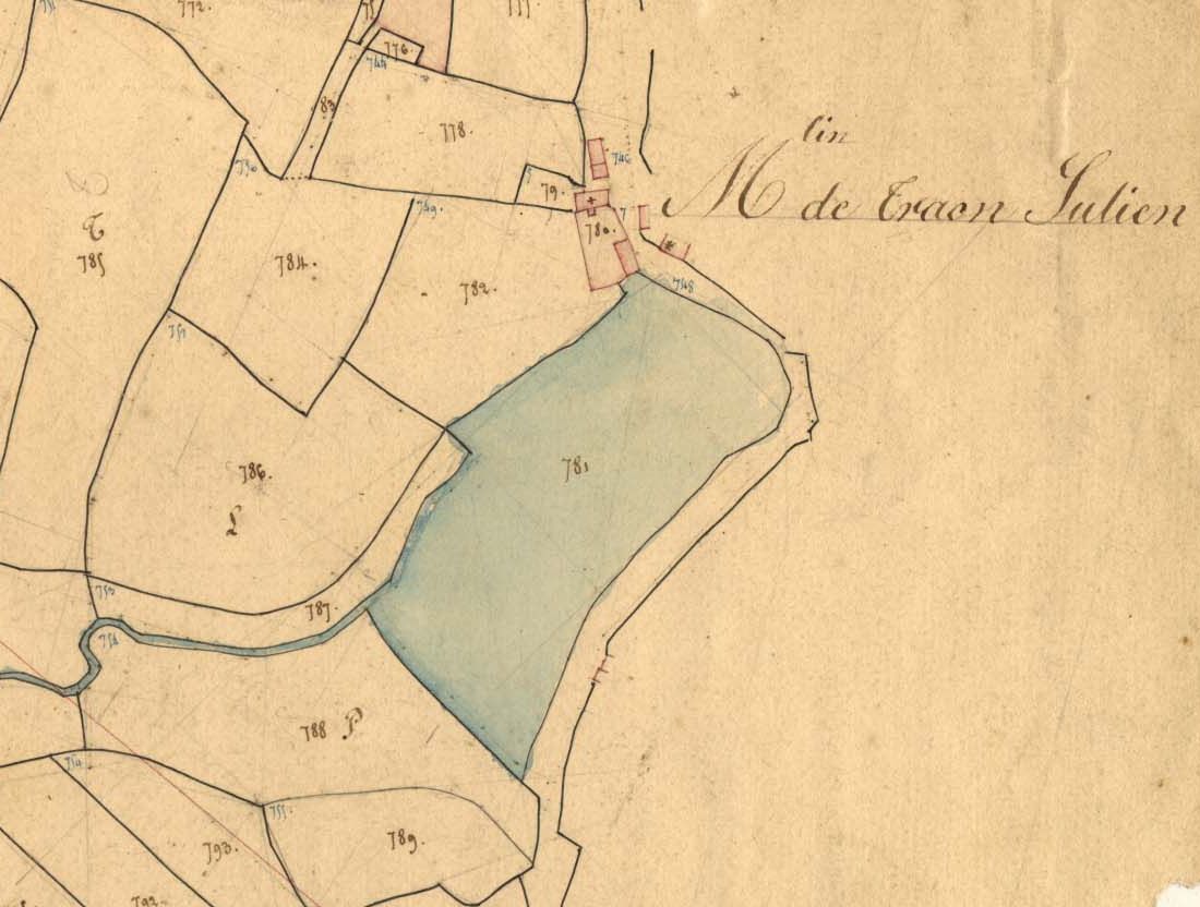 La partie aval du moulin de Traonjulien sur le cadastre de 1837 (A. D. du Finistère, 3 P 207/12)Immatriculation