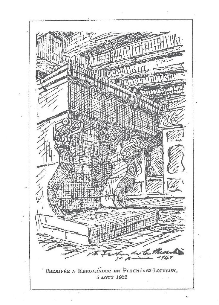 FROTIER DE LA MESSELIÈRE, Henri. Cheminée à Kergaradec en Plounévez-Lochrist. Croquis du 5 aout 1922. Saint-Brieuc, 1941.