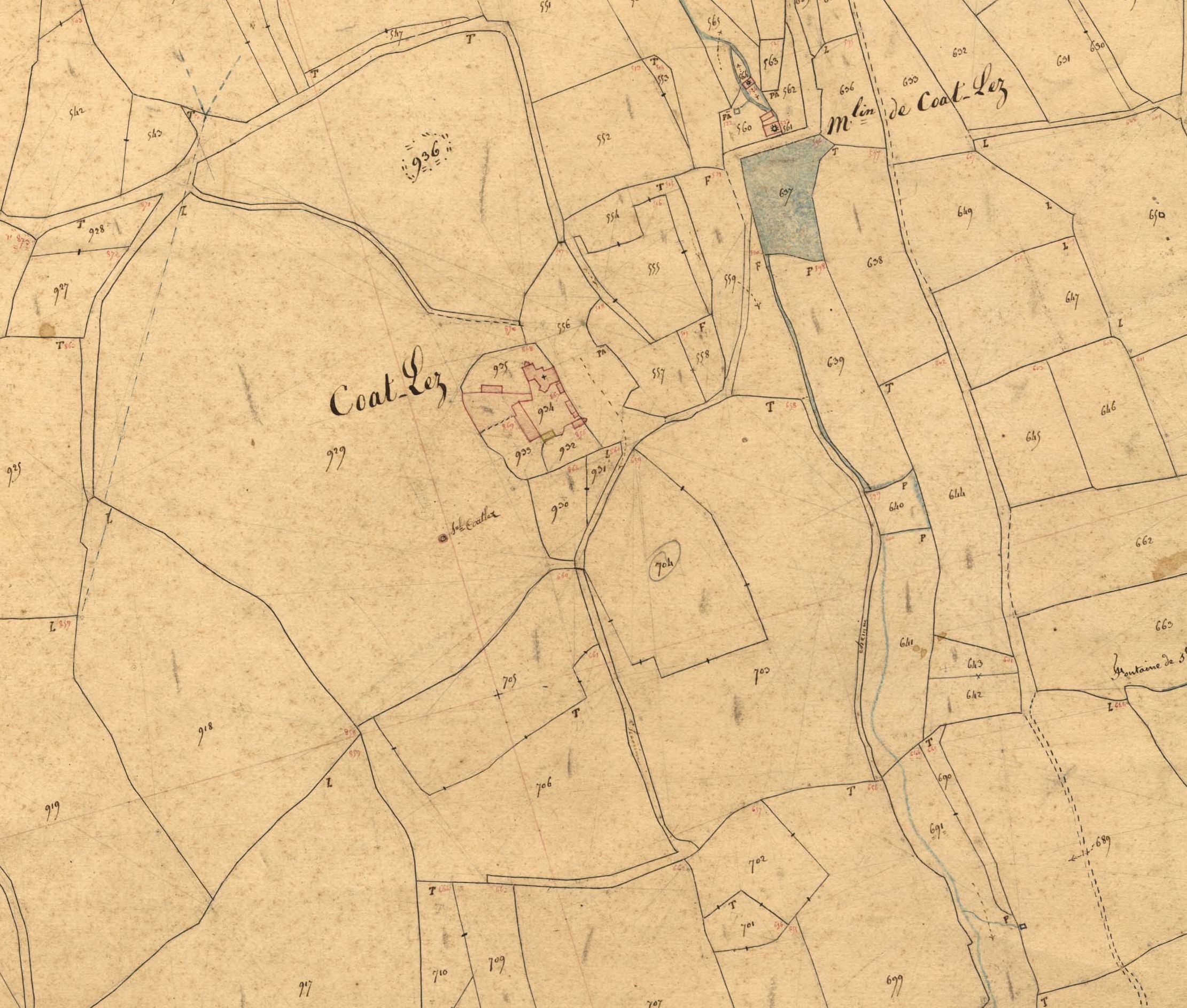 Le domaine de Coast Lez sur le cadastre de 1836 (A. D. du Finistère, 3 P 287/9)Immatriculation