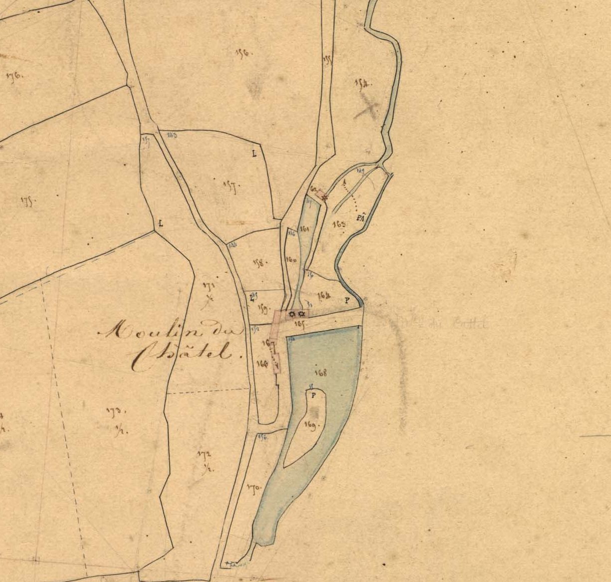 Le moulin du Châtel sur le cadastre de 1837 (A. D. du Finistère, 3 P 207/7)Immatriculation