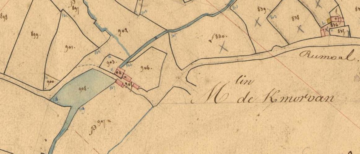 Le moulin de Kermorvan sur le cadastre de 1837 (A. D. du Finistère, 3 P 207/12)Immatriculation