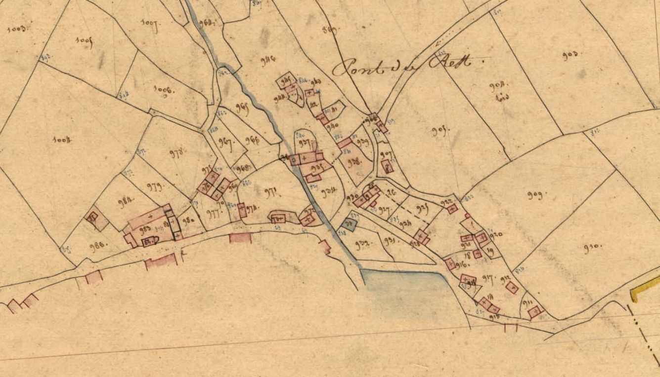 La partie est du bourg : Pont ar Rest, sur le cadastre de 1837 (A. D. du Finistère, 3 P 207/17)Immatriculation