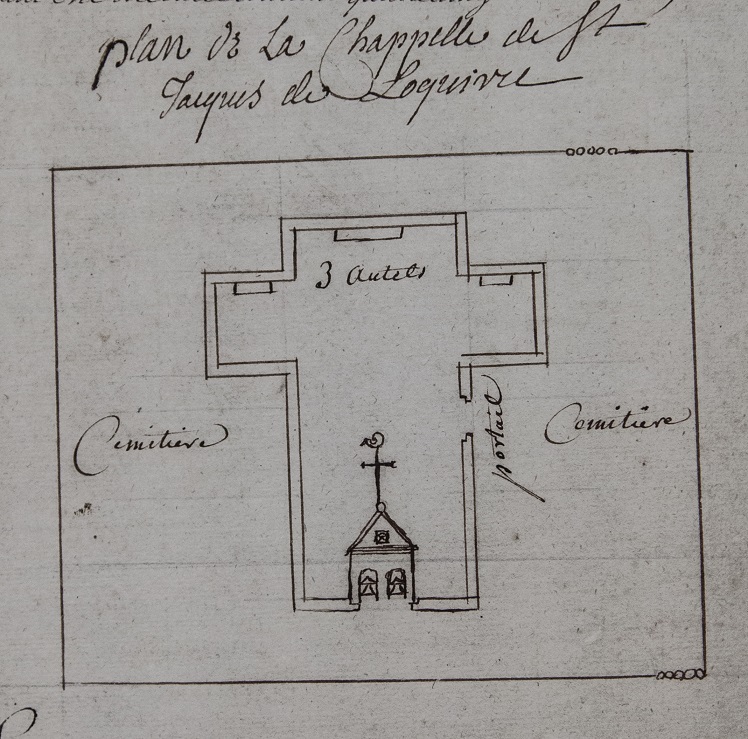 Plan de la chapelle de Saint-Jacques de Locquirec, 1730. (A.D. Côtes d’Armor, H582)Immatriculation