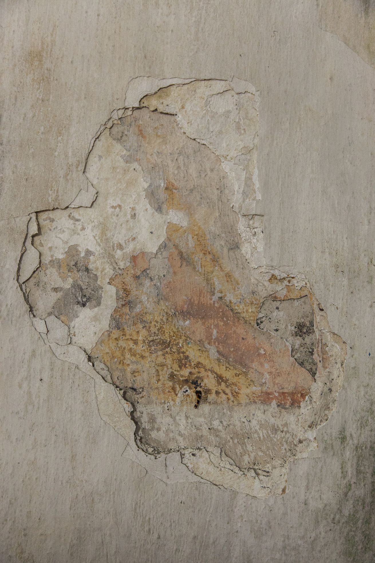 Chapelle Saint-Jean-Balanan, Plouvien - détail de peinture polychrome sous l'enduit actuelImmatriculation
