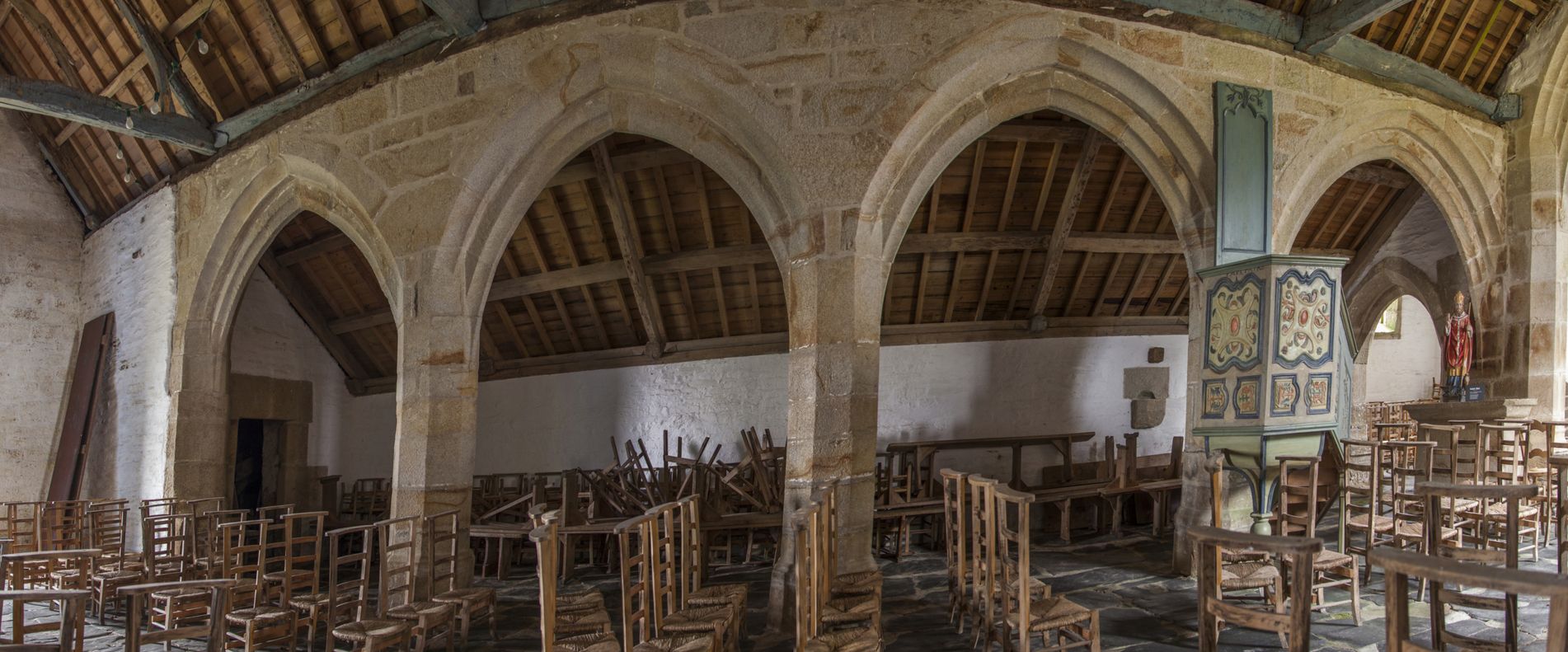 Chapelle Saint-Jean-Botlan, Edern - arcades en arc brisé entre la nef et le bas-côtéImmatriculation