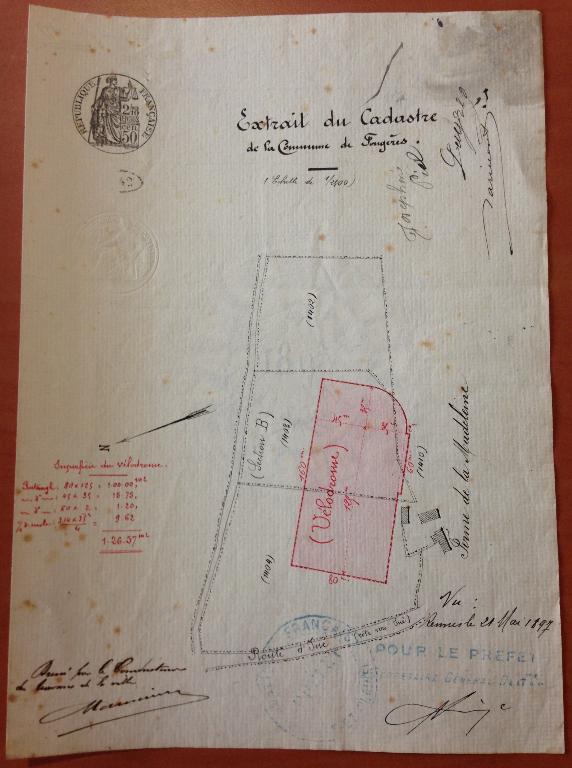 Extrait du cadastre avec le tracé du vélodrome (mai 1897)Immatriculation