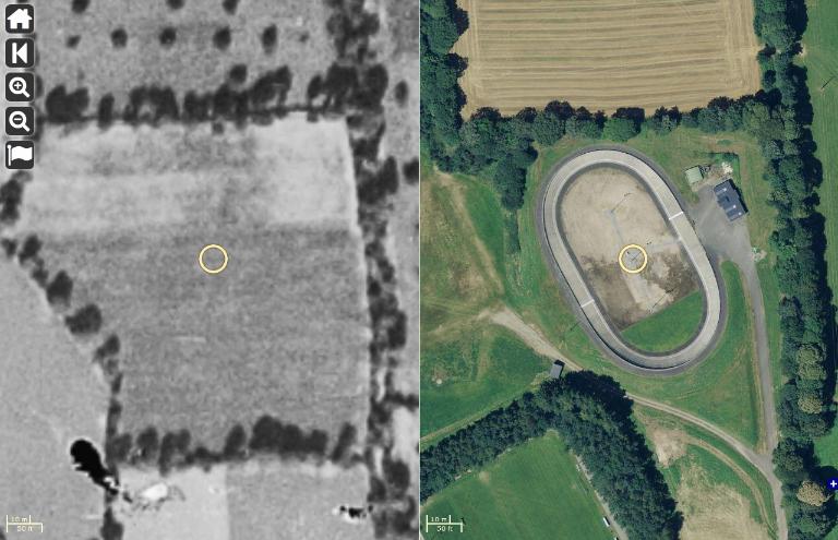 Vue aérienne comparée du site 1949 vs. 2012Immatriculation