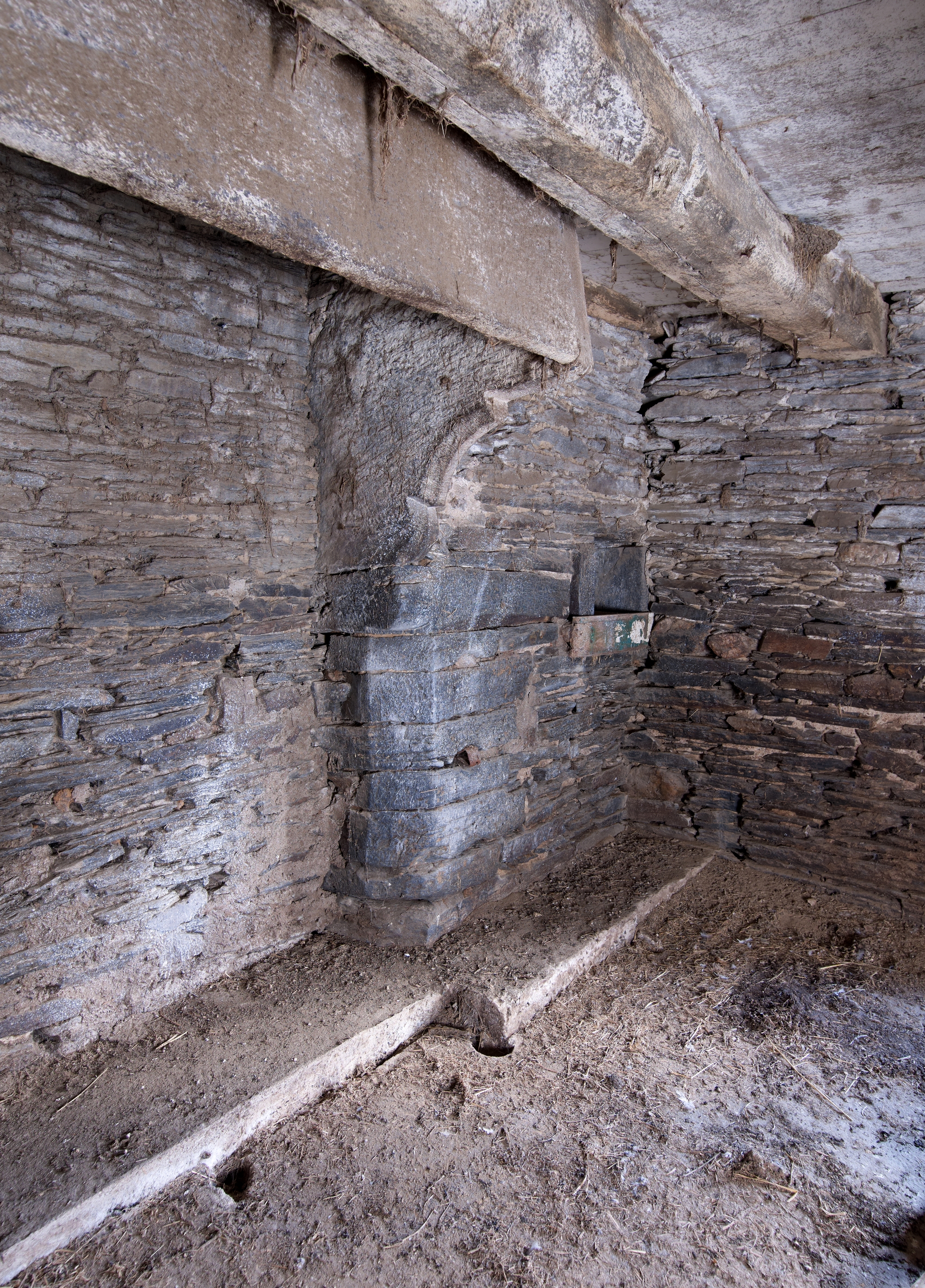 Manoir, aujourd'hui dépendance de ferme : profil de la console moulurée qui soutient le linteau (état en 2015)Immatriculation