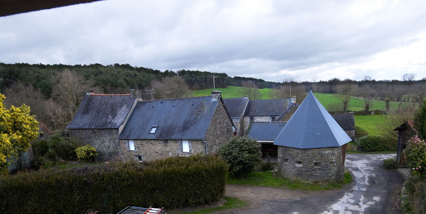 Manoir, auj. maison : vue de situation prise du nord-ouest (état en 2015)Immatriculation