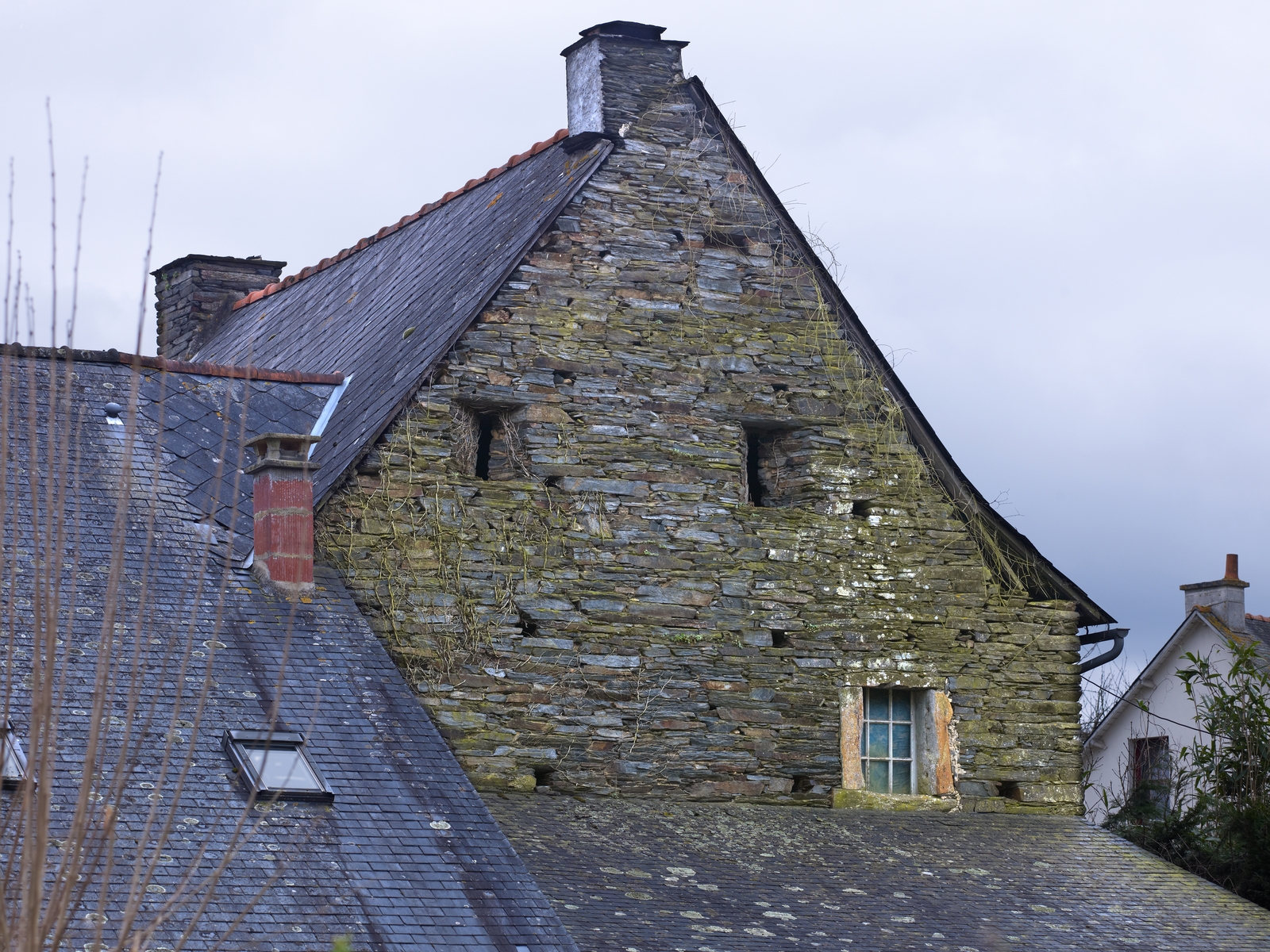Manoir, auj. maison : le pignon vu du nord-est ; les deux baies supérieures étaient destinées à assurer la défense vers le nord (état en 2015)Immatriculation