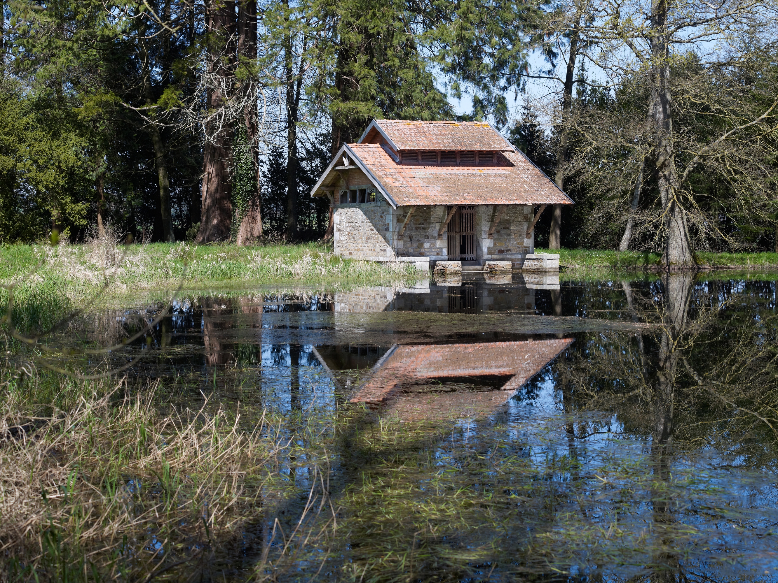 Lavoir privé, de style pittoresque avec buanderie et séchoir bordant la pièce d’eauImmatriculation