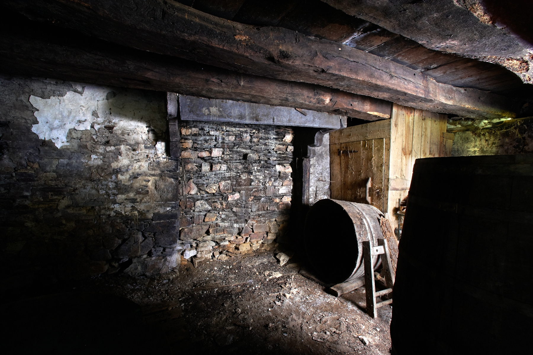 Ferme, intérieur : cheminée sur le mur-pignon est (état en 2015)Immatriculation