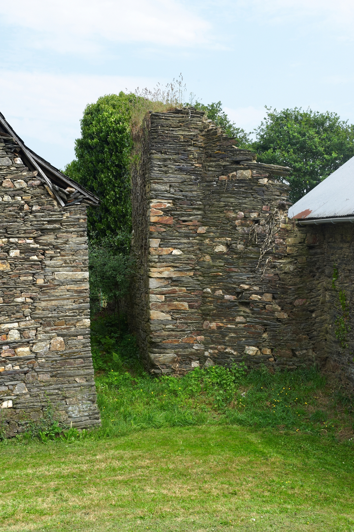 Au sud de la ferme, vestiges d'un bâtiment à tour d'escalier presque sur l'angle (état en 2015)Immatriculation