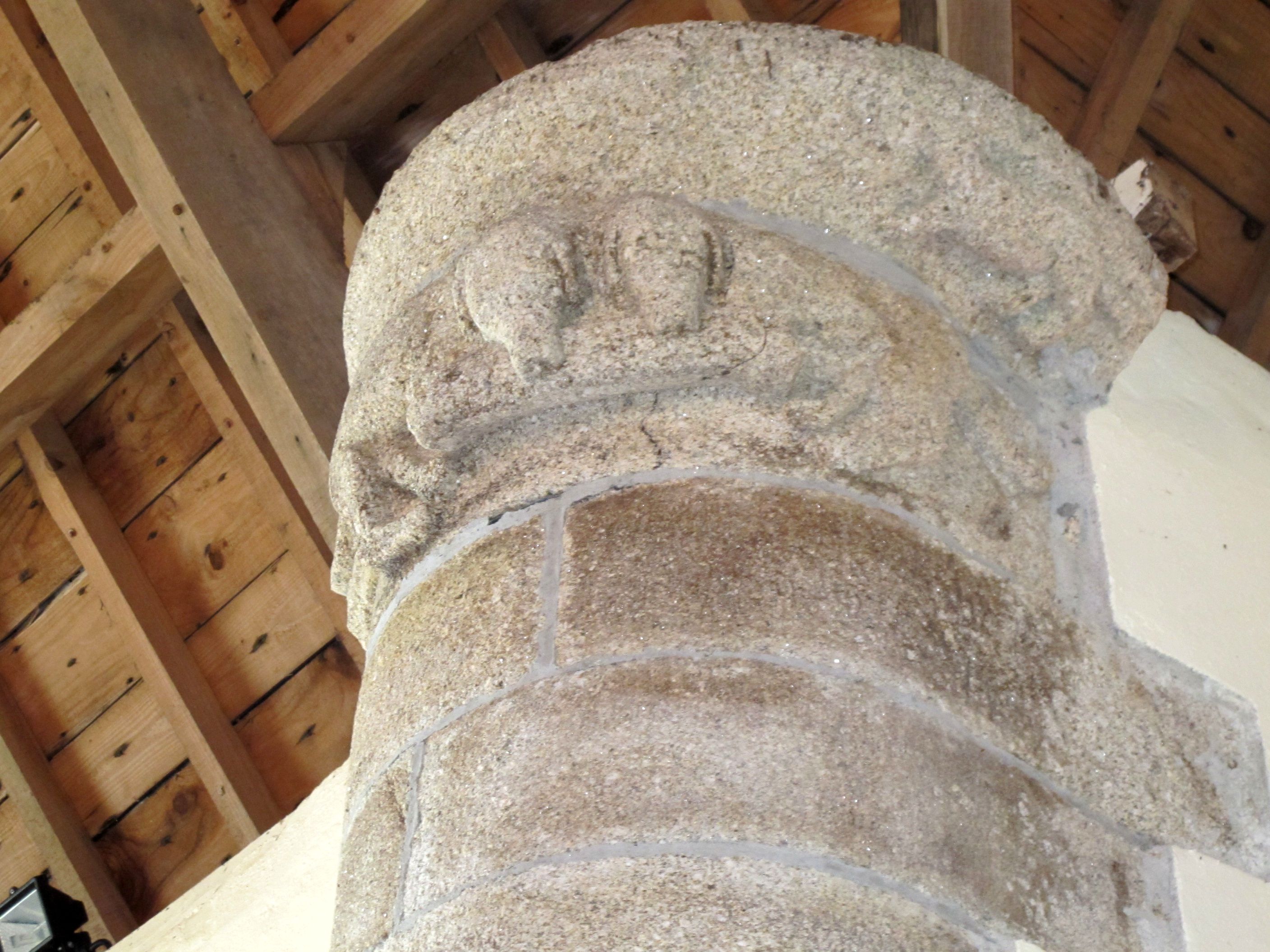 Colonne sud-ouest, chapiteau orné de chiens tenant un os.Immatriculation