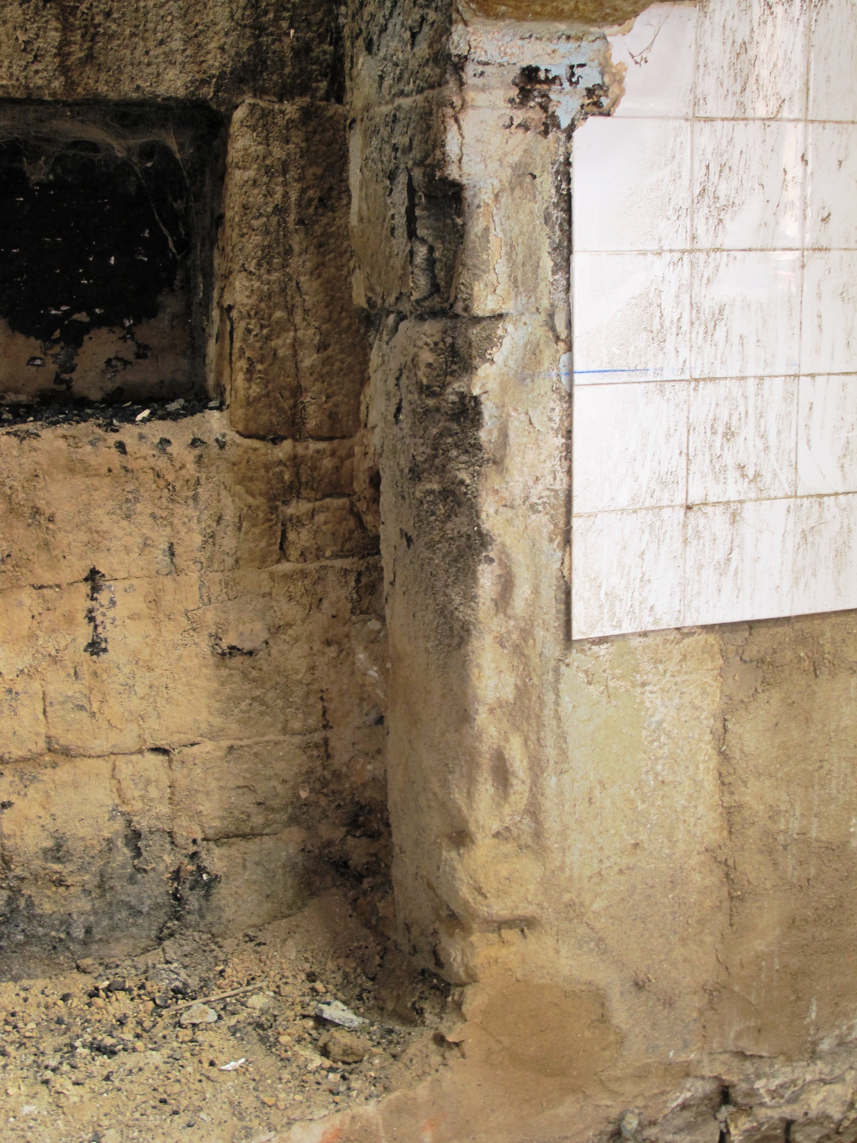 Logis daté 1670, pignon est, détail du piédroit droit de la cheminée (2015)Immatriculation