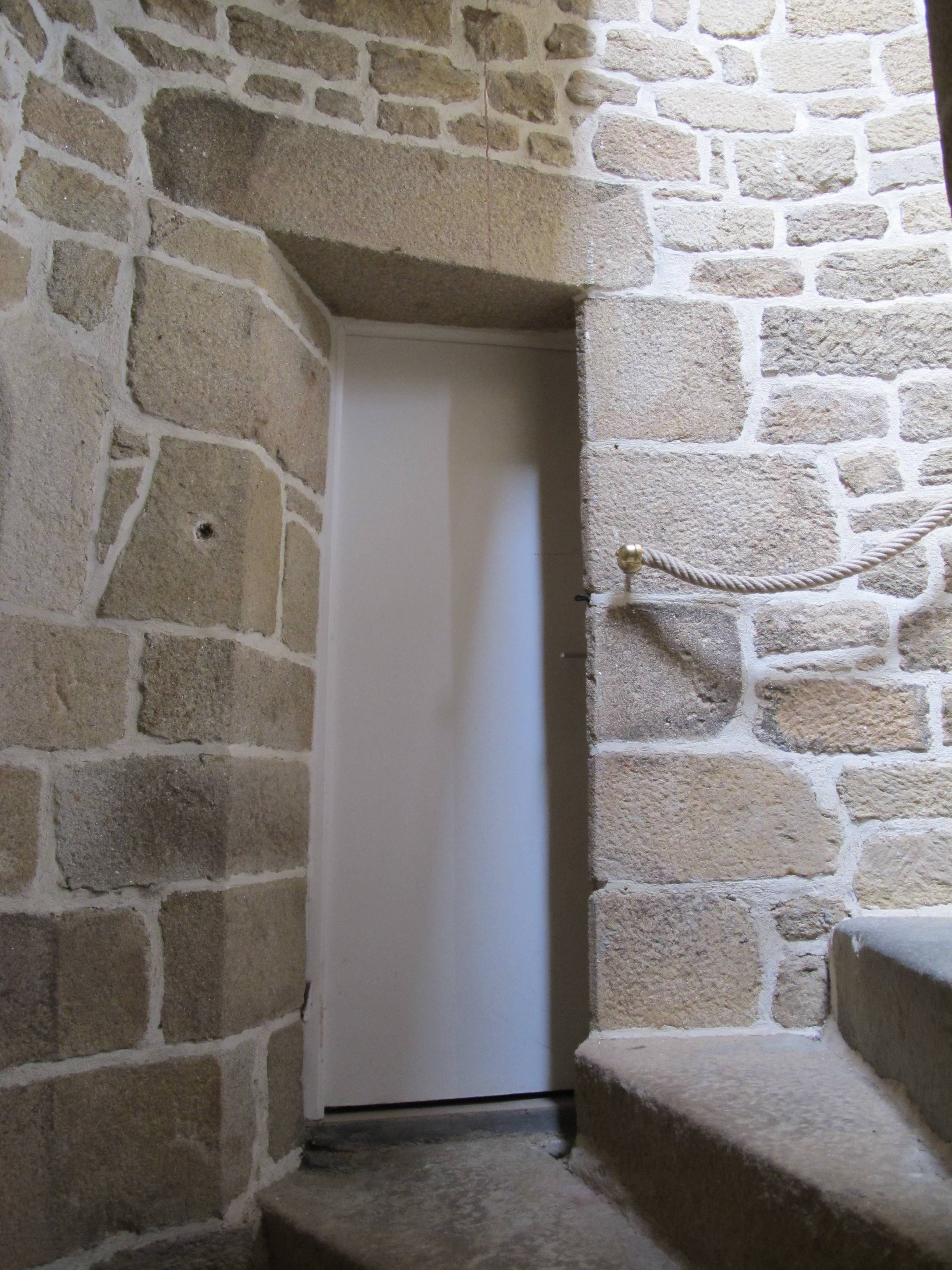 Porte d'accès au corps de latrines à partir de l'escalier, état en 2015Immatriculation