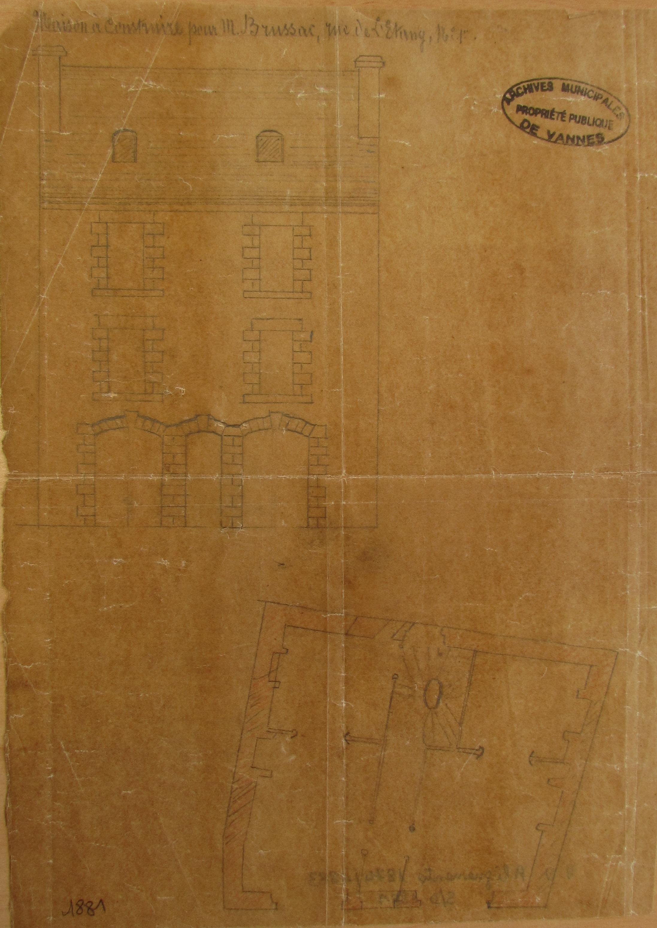 Plan de la maison de Pierre Brussac, 1881. AM Vannes 54 Fi.Immatriculation