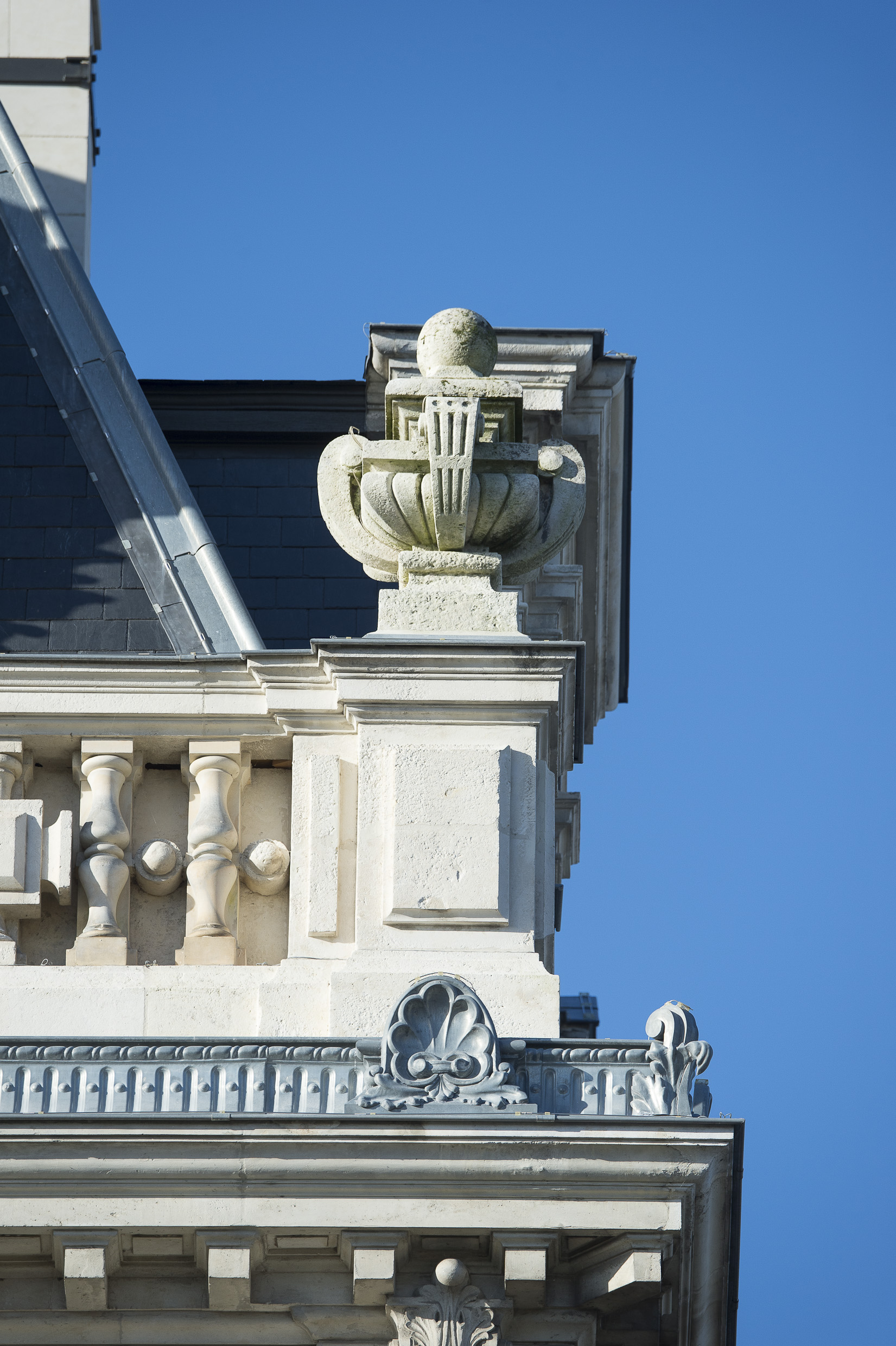 Pavillon vers le nord, étage de comble, vase aux extrémités de la balustradeImmatriculation