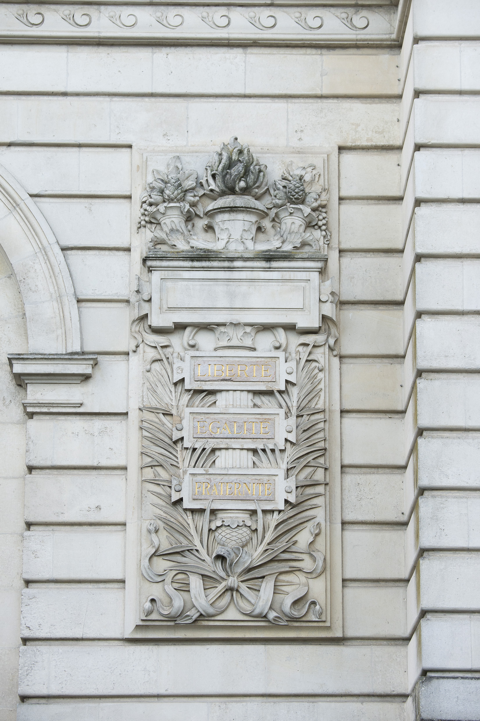 Table saillante sculptée portant la devise de la République françaiseImmatriculation