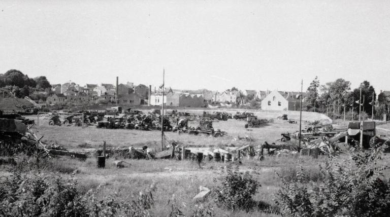 Archives municipales de Lorient 9 Fi 135 - Artillerie et véhicules militaires allemands entreposés au Parc des Sports (1945-1946)