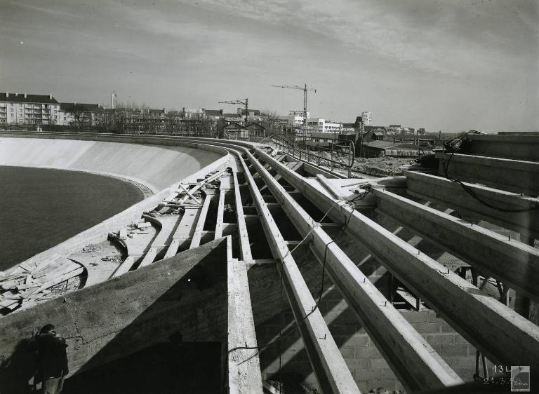 Vue du virage est depuis la tribune sud (21 mars 1958)Immatriculation