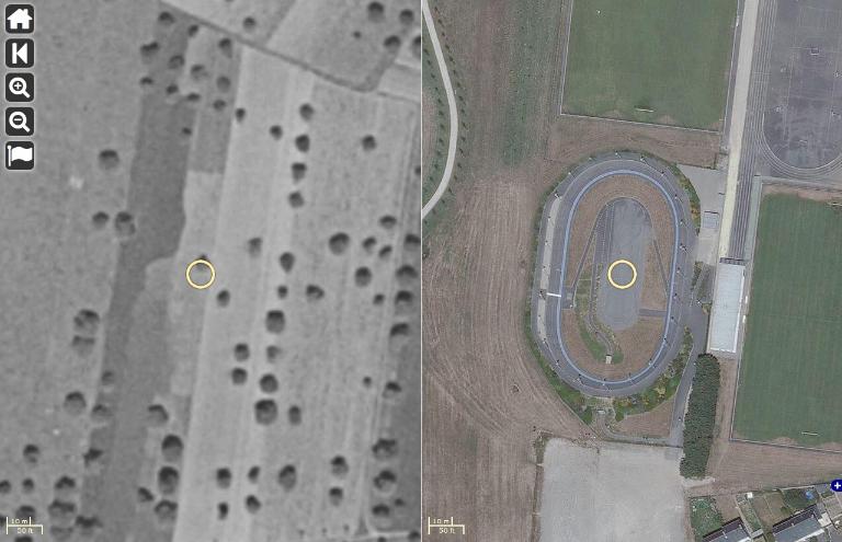 Vue aérienne comparée du site 1952 vs. 2012Immatriculation
