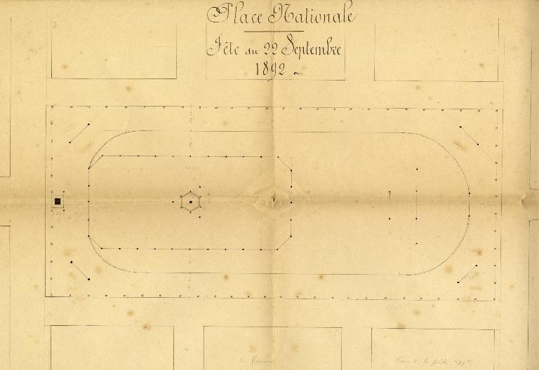 Plan du vélodrome aménagé sur la place nationale (22 septembre 1892)Immatriculation