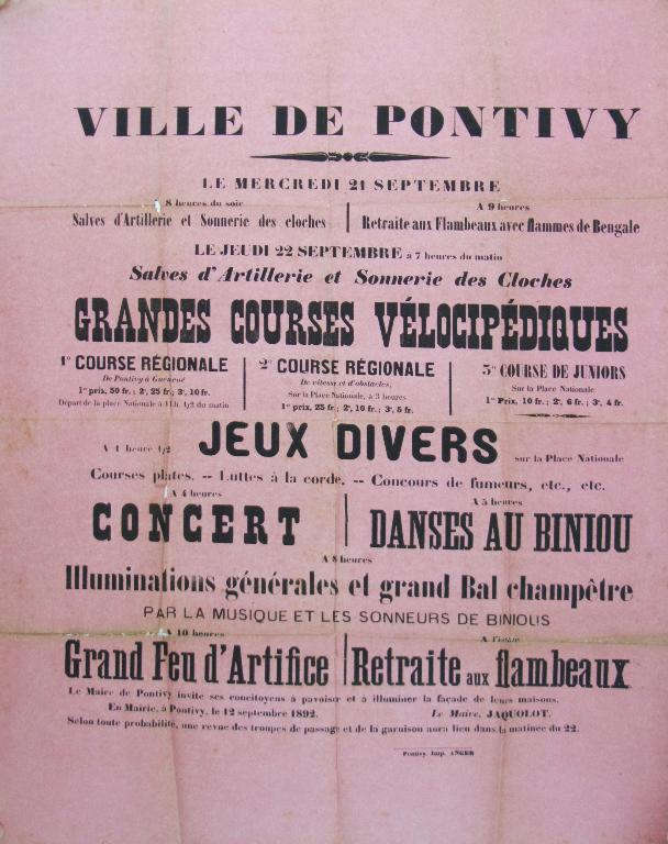 Archives municipales de Pontivy 1 J 876 - Centenaire de la République (22 septembre 1892)