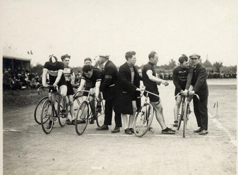 Inauguration du vélodrome de Bolumet : départ de la première course (9 mai 1926)Immatriculation