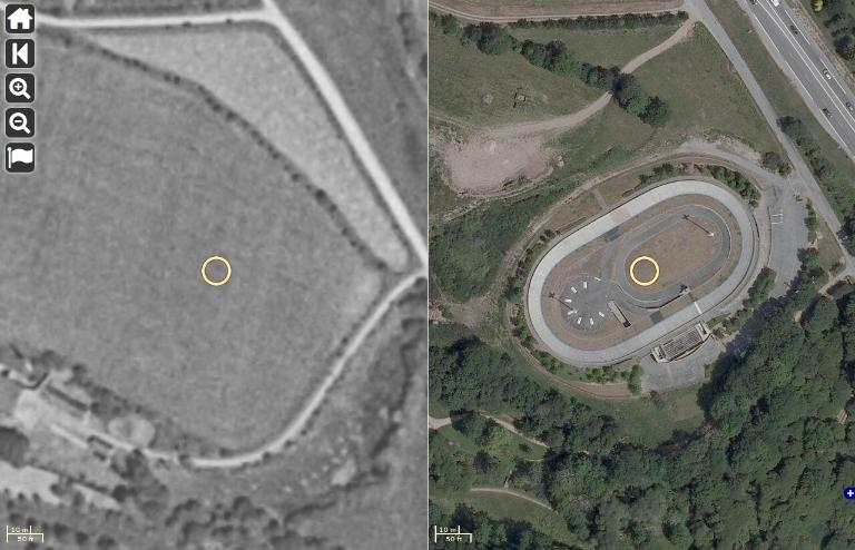 Vue aérienne comparée du site 1952 vs. 2012Immatriculation