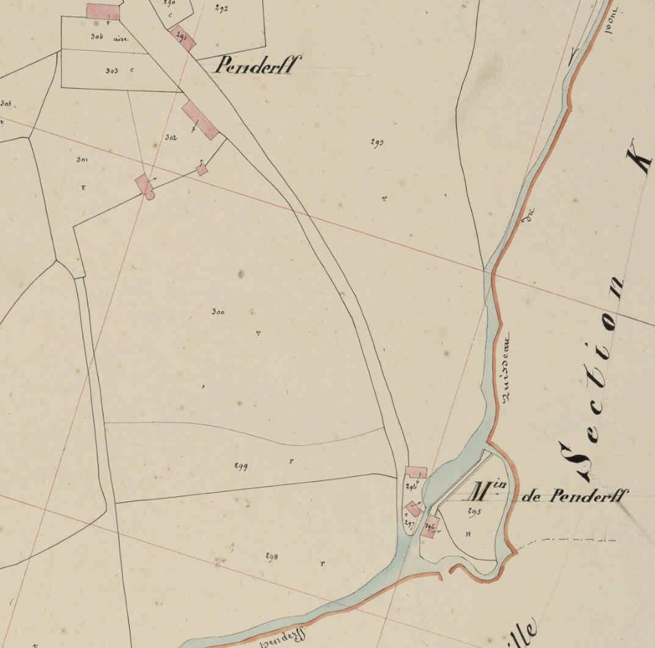 Penderff et moulin de Penderff. Plan cadastral 1842, section J2 (AD Morbihan, 3P 158)Immatriculation