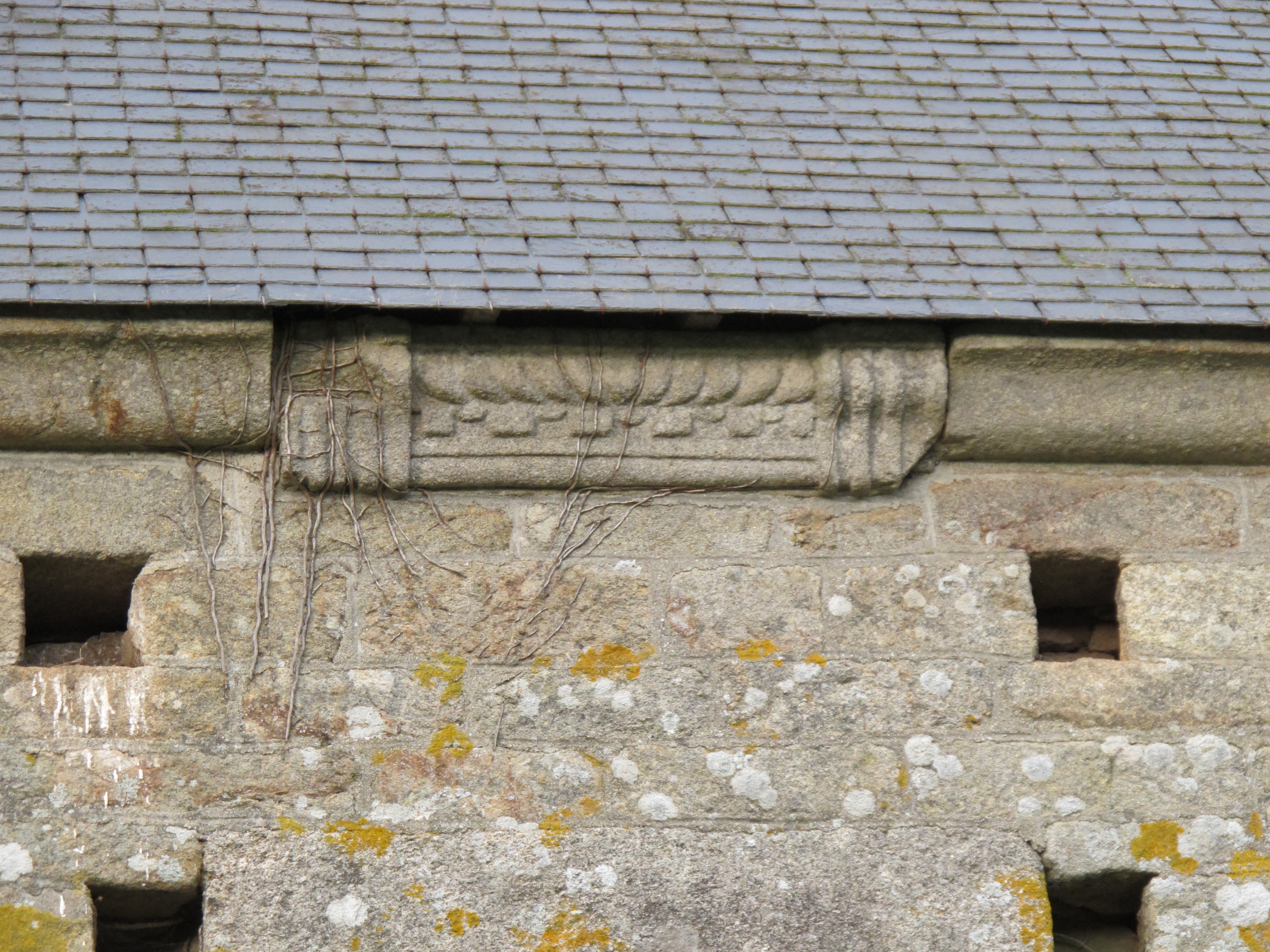 Logis à étage, détail de l'appui de la lucarne disparue, état en 2015Immatriculation