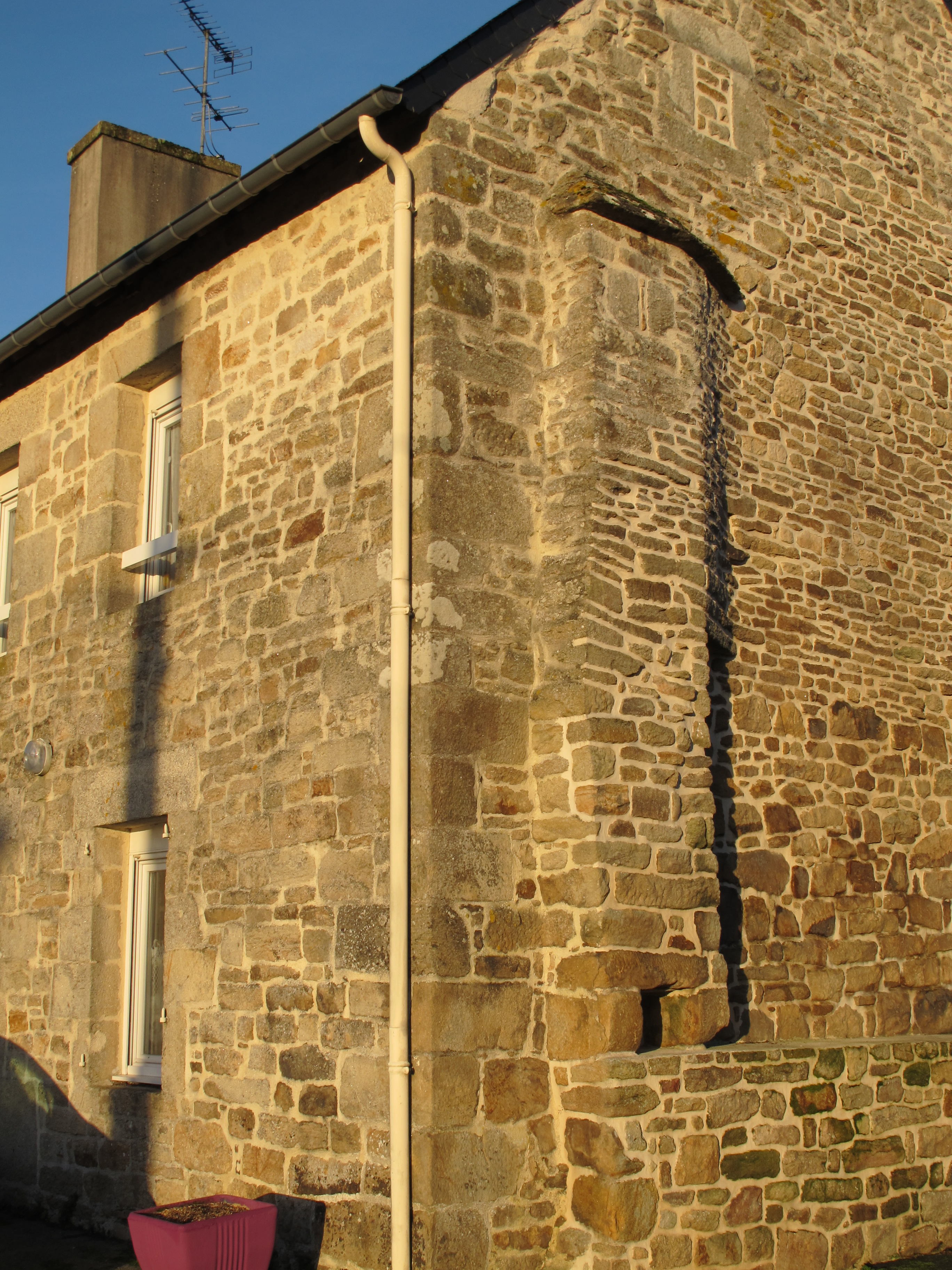 Rue de Porharch, ensemble de deux maisons, parcelle 395, pignon est : latrines en saillie, état en 2015Immatriculation