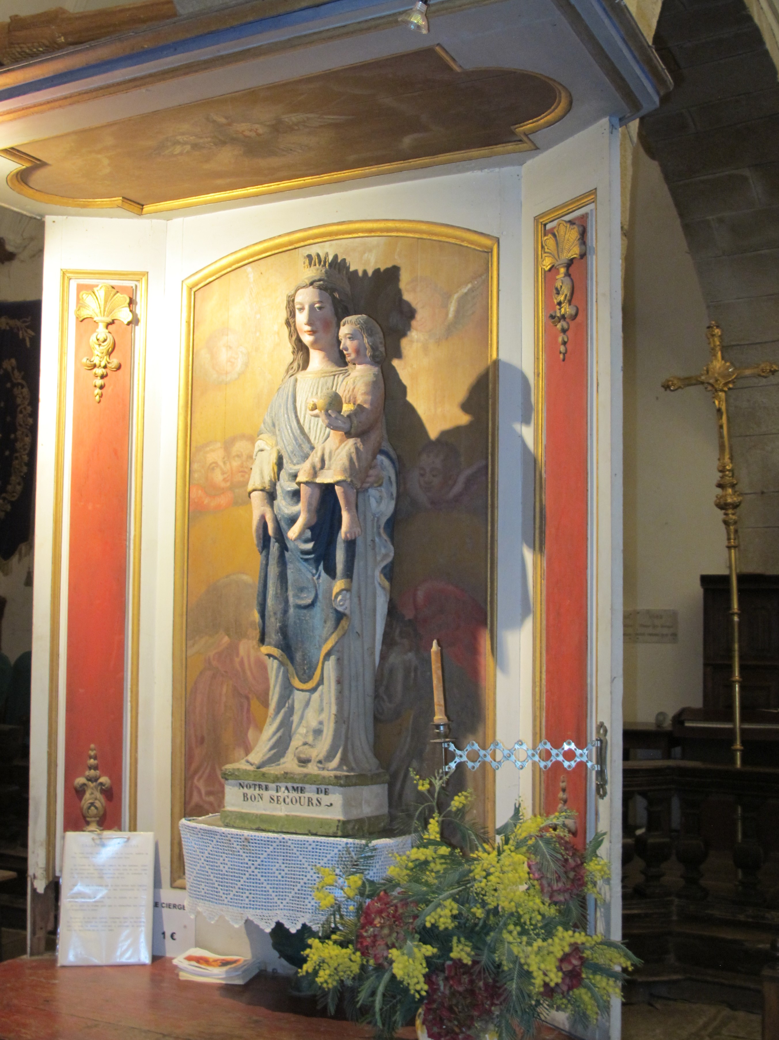 Statue (petite nature, d'applique) : Vierge à l'Enfant dite Notre-Dame de Bon Secours (Locmalo),