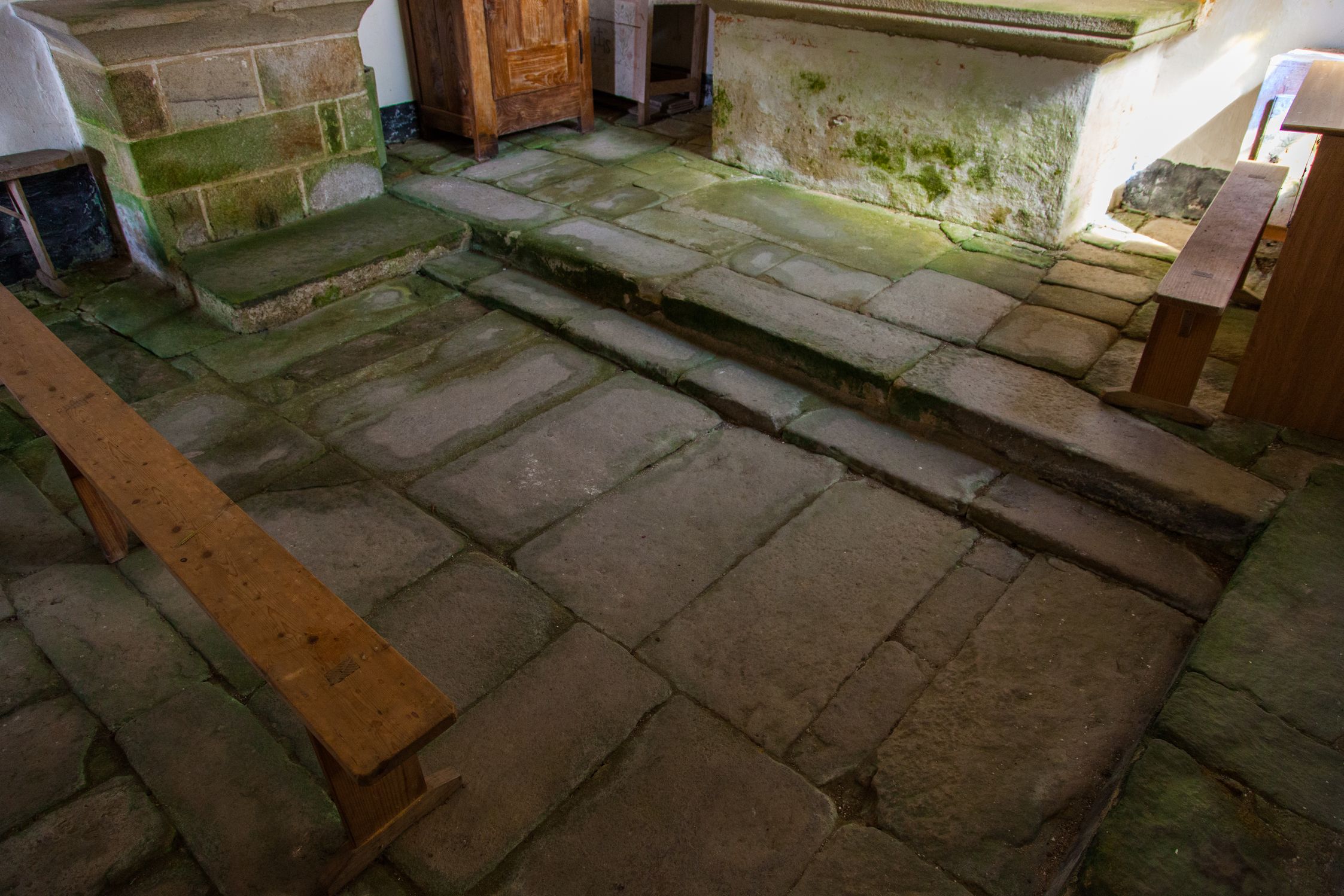 Détail pavement de la nef et du choeur, chapelle Saint-Julien, LimerzelImmatriculation