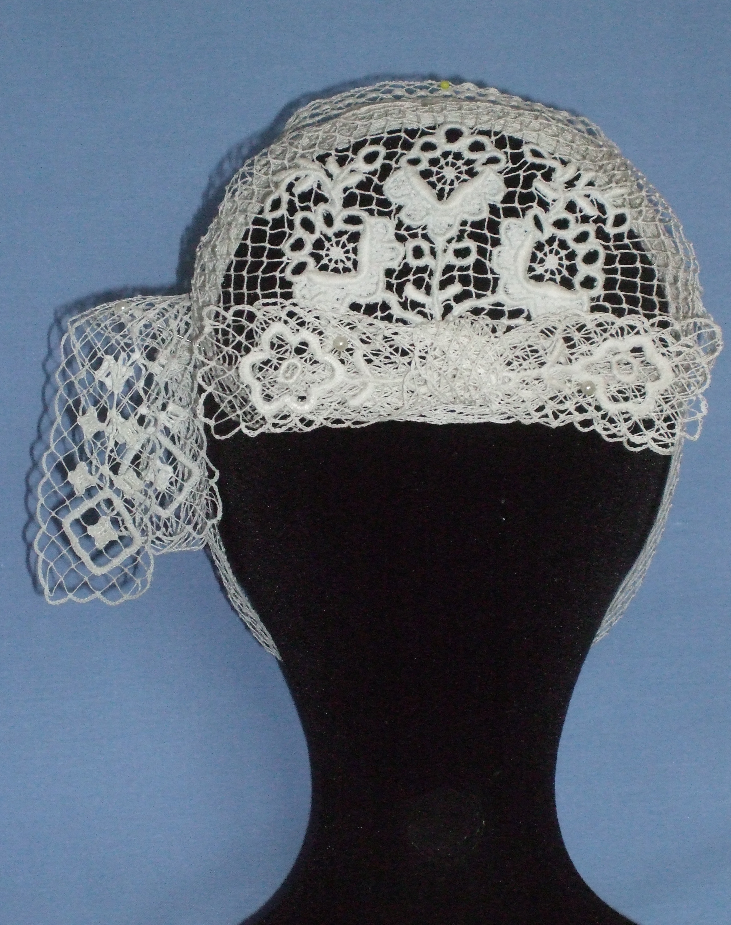 Coiffe authentique d'artisane de Ploërmel. Vue de dos. Collection et photo de Michel RocherImmatriculation