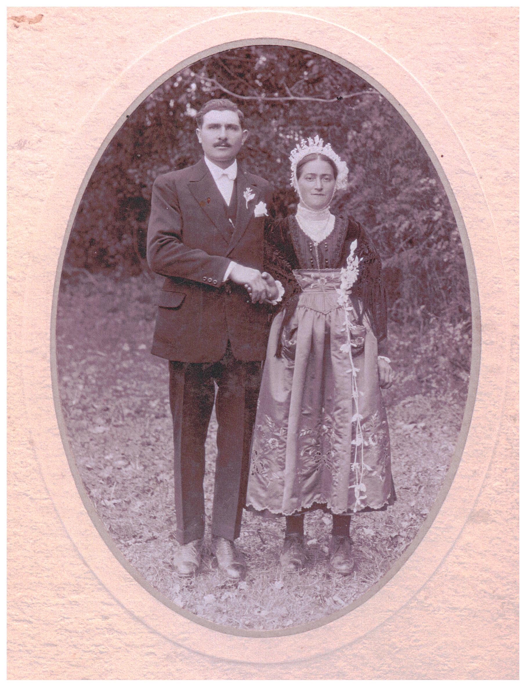 Coiffe et costume de la fin des années 1920. CPA de Michel Rocher.Immatriculation