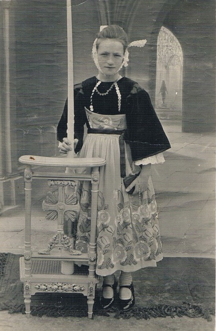 Francine, fille de Francine Toquin et François Le Toullec, lors de sa 1re communion en 1932. (Photographie de famille Yvonne Olivier)Immatriculation